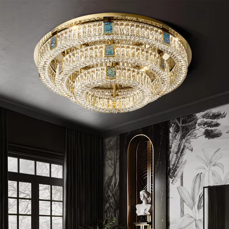 Modern Crystal LED Ceiling Light - 3500K Warm White, Gold Electroplated Stainless Steel, Remote Control